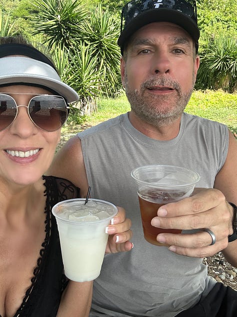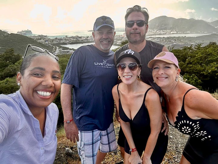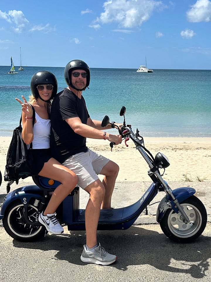 St. Lucia: We had booked a scooter tour for all four of us, imagining cute little Vespa vibes. Absolutely not. These were mini Harley Davidson hell beasts disguised as “scooters.” Kathy and I took one very tentative test drive and immediately opted to become passenger princesses - crowns metaphorically on, pride fully intact. The boys bravely powered on, and by the time the tour ended, the general consensus was: “We’re just happy to still be alive.”