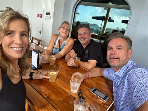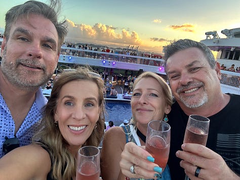 We were beyond excited to join Troy and Kathy for their very first cruise. We kicked things off with drinks at The Dock, because nothing says “bon voyage” like a cocktail before you’ve even left the pier. Then it was time for the Sail Away party, where the music was loud, the vibe was festive, and the champagne intake… well, let’s just say we definitely took advantage of the free champagne.