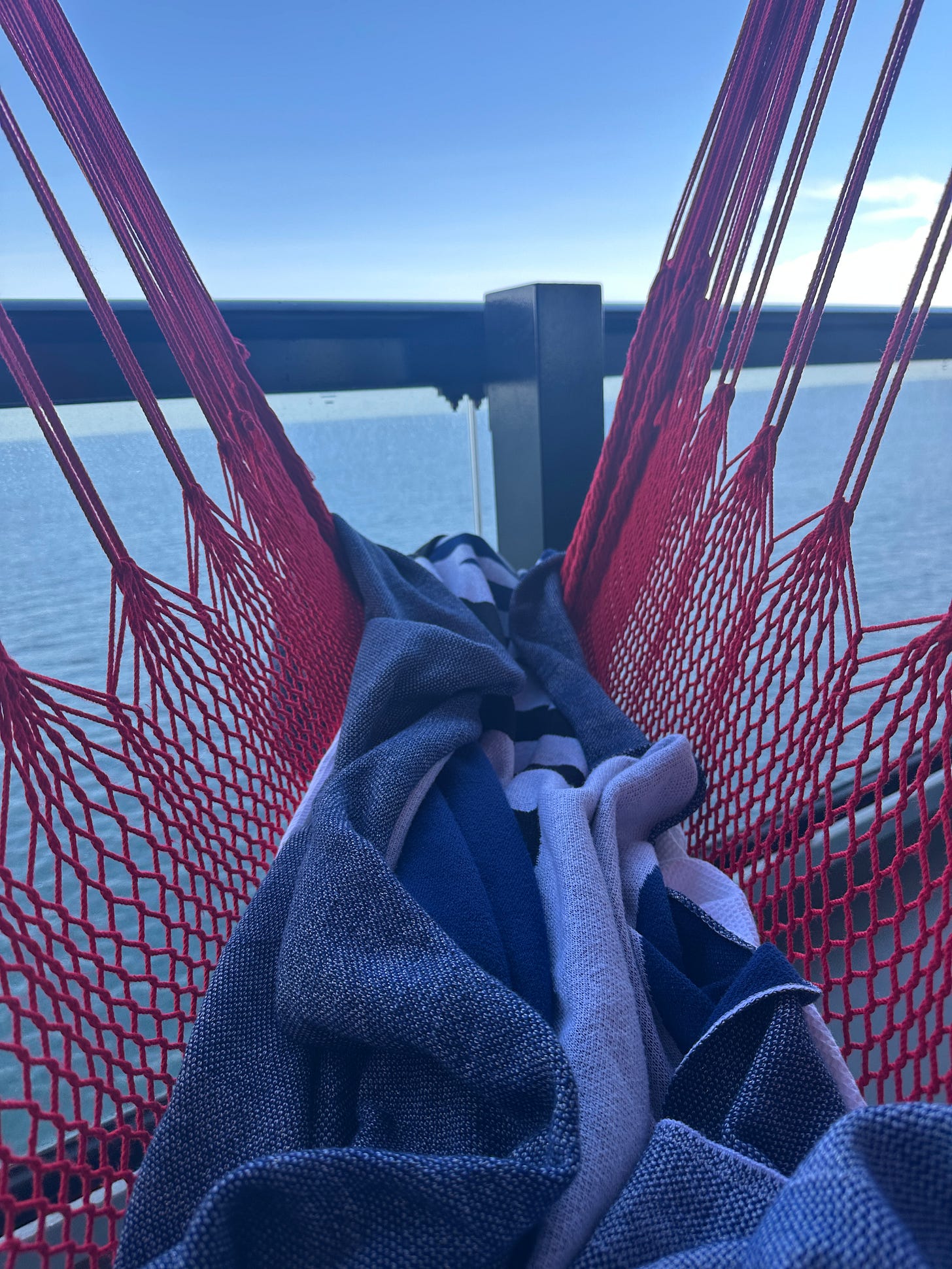 I started our sea day very early, in the hammock, to give Shawn a break from my sinus-drainage-induced coughing. Ugh.