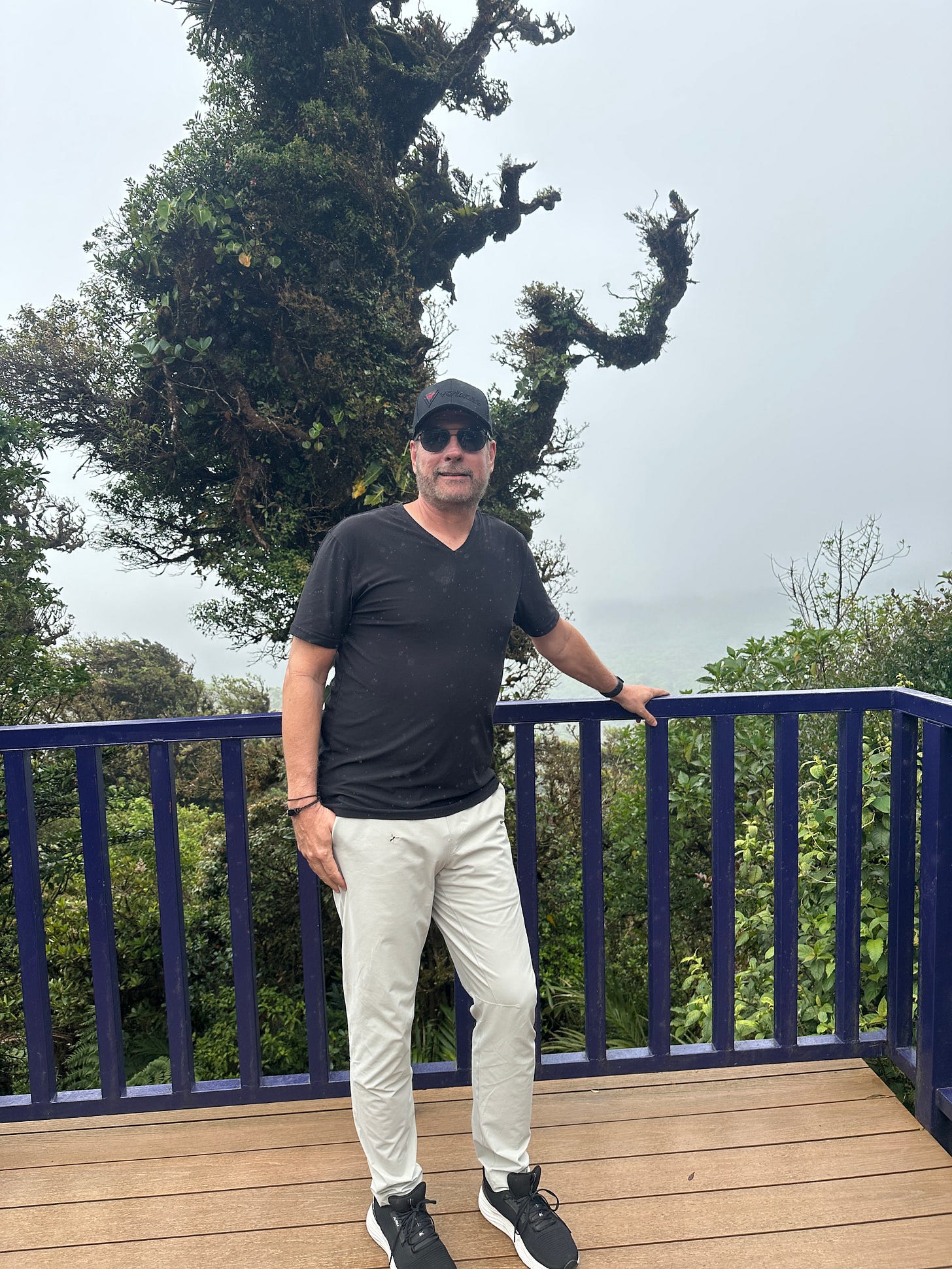 We rolled up to Treetopia, the mystical cloud-forest venue, at 2:40 pm. This is where orchids, monkeys, sloths, and Instagram dreams allegedly live. Mood check: no one had eaten since breakfast, the bus had aged us a collective ten years, and we all felt slightly gross after those switchbacks. The tour suggested long pants (probably jungle etiquette). Our guide suggested, “You might want rain gear, but I don’t think you need it.” Famous last words.