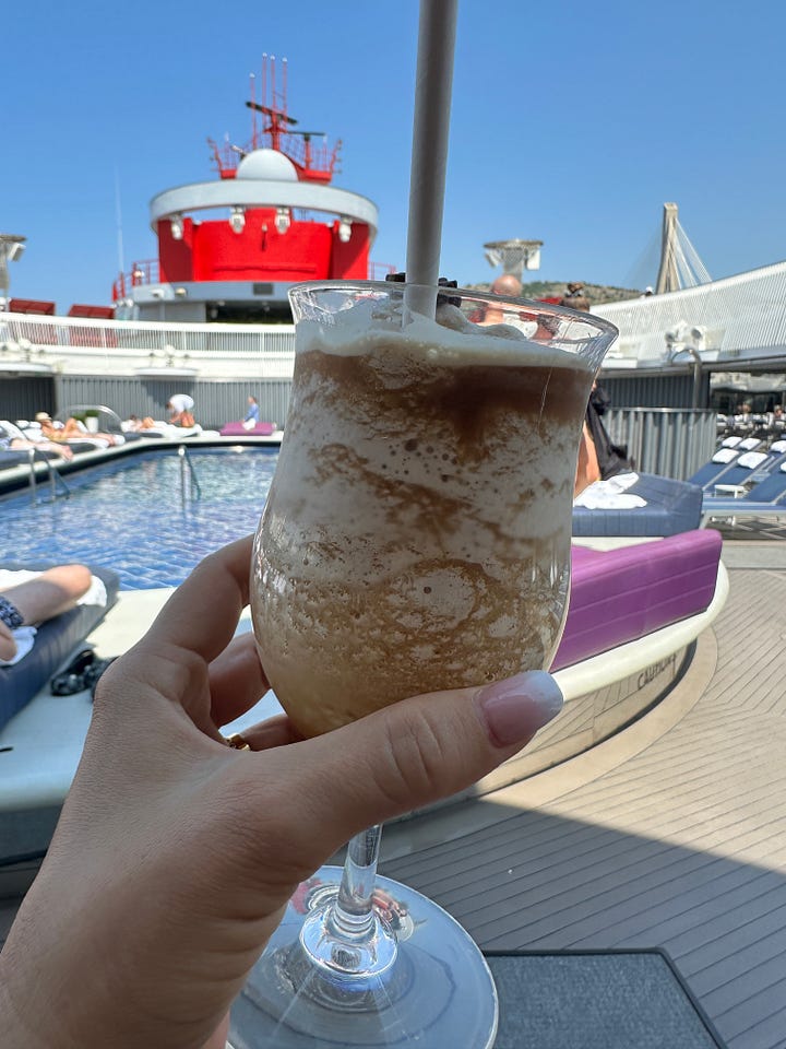 We grabbed drinks at a cafe overlooking the port and then hightailed it back to the air-conditioned ship for frozen espresso martinis.