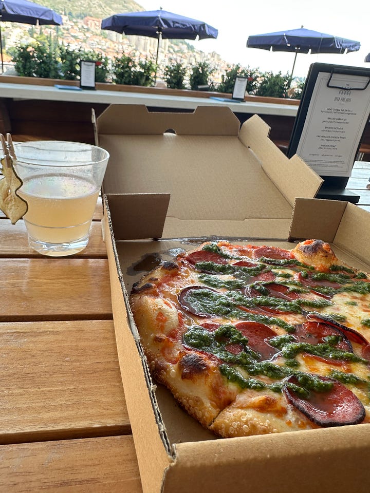 Later, we grabbed pizzas (Virgin makes a solid pizza) and took them to The Dock for afternoon cocktails. My top pick: pepperoni, well done, with a drizzle of pesto.